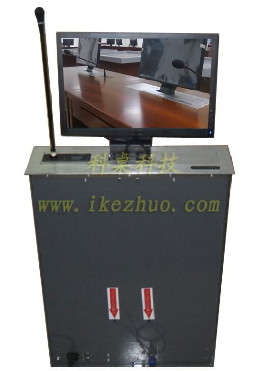 需要使用顯示屏時,隱藏在會議桌內(nèi)部的升降機把顯示屏從會議下面升到桌子表面;當不使用顯示屏時,升降機自動下降,顯示屏隱藏在會議桌內(nèi)部,防盜、防塵;保持桌子表面的平整和美觀。