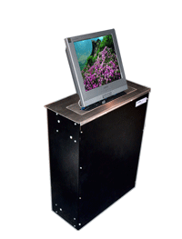 液晶屏升降器主要應(yīng)用于大型會議室,高級多媒體網(wǎng)絡(luò)系統(tǒng),當(dāng)需要舉行會議時隱藏在會議桌內(nèi)的升降機(jī)把顯示屏從會議桌下面自動升到桌面并仰成一成角度,符合人機(jī)工程學(xué)原理,產(chǎn)品也可以左右調(diào)節(jié)角度,更有利于辦公演示的需要,當(dāng)不使用時顯示屏可自動下降隱藏于會議桌內(nèi)部,并自動關(guān)門,產(chǎn)品具有防盜、防塵保持桌面平整,美化桌面等功能。最新研制生產(chǎn)的同步帶傳輸液晶顯示屏升降器,克服了鏈條、和齒條升降器的噪音大、油污多、傳動不穩(wěn)定等缺點(diǎn),是目前國內(nèi)最新液晶屏升降器的傳動方式。
